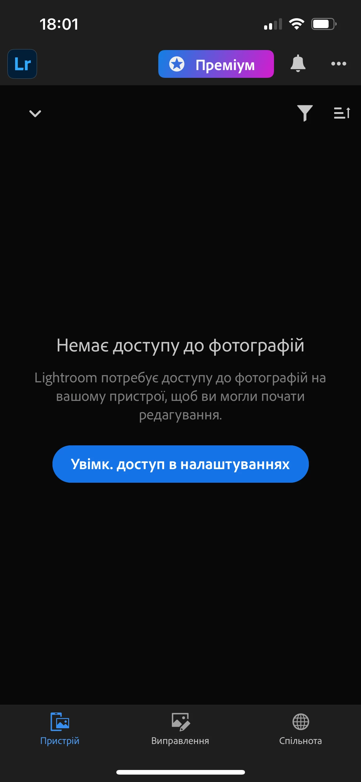 доброго дня) хотіла би запитати як я маю увімкнути доступ до фото якщо в панелі налаштувань такого немає😕😕