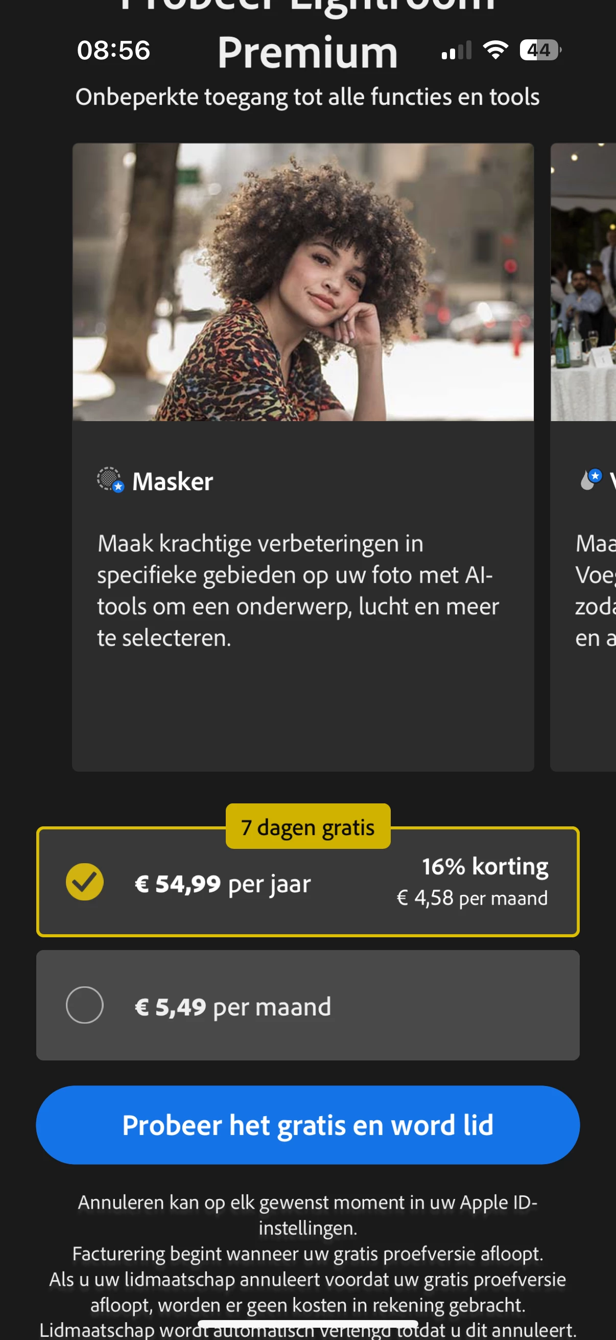 Hey, @rutger_3146. Welcome to the Lightroom community. I reviewed your account for the community and found no active subscription or transaction for Lightroom.