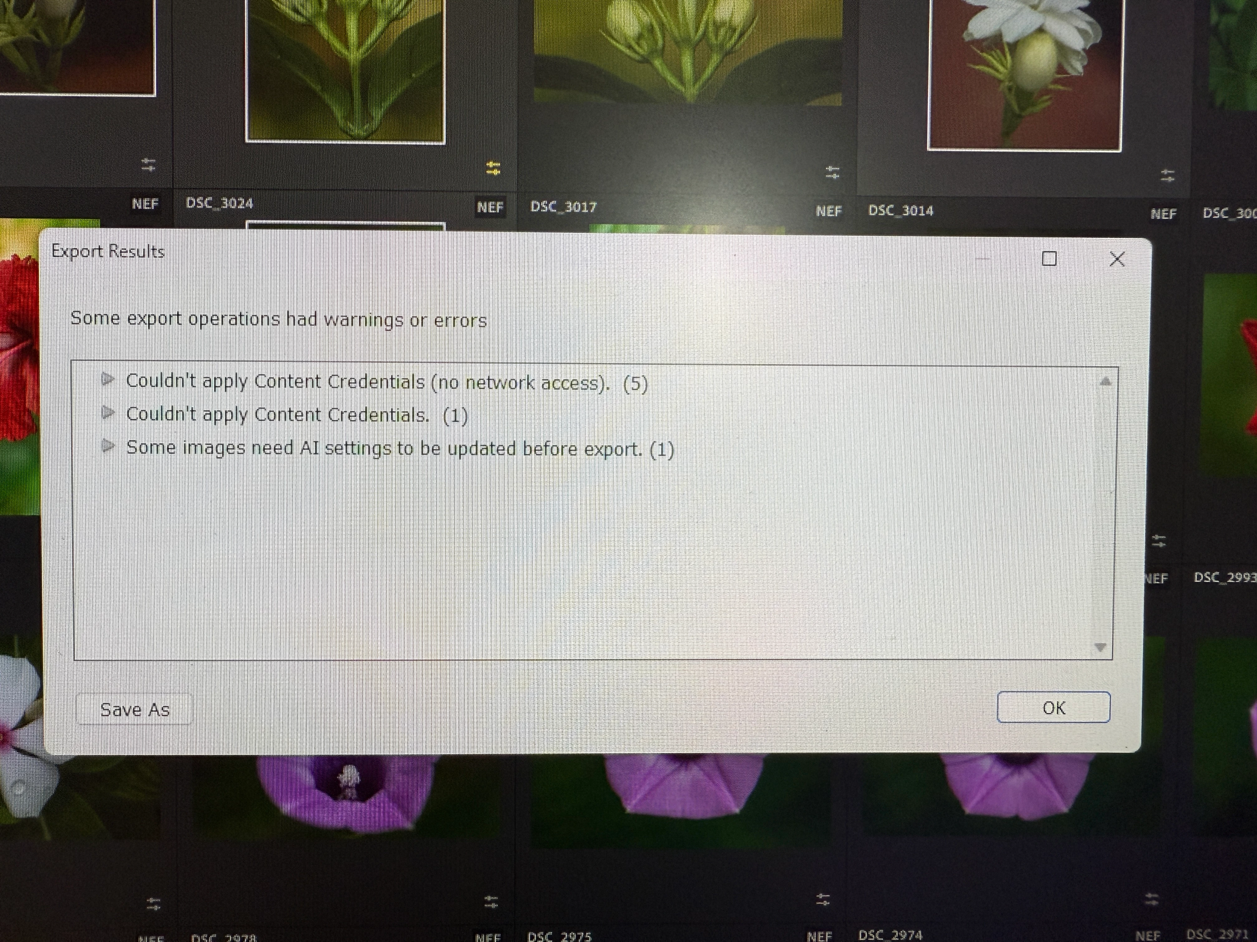 Unable to export edited images to folder on desktop
