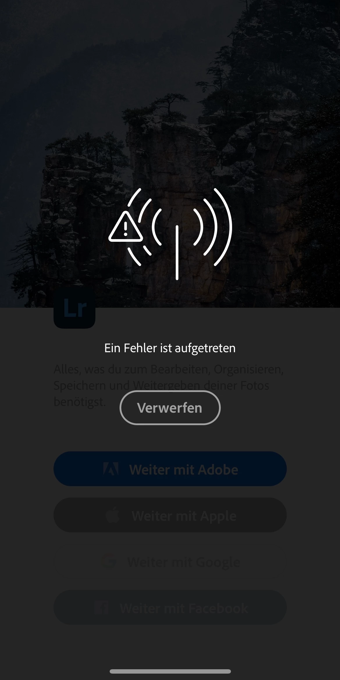 when trying to sign-in to Lightroom Mobile (with iPhone 12) via Adobe-ID, it just shows an error. However, signing in with Apple or Google works just fine. I added a photo of the error below (it's german for "an error occured")