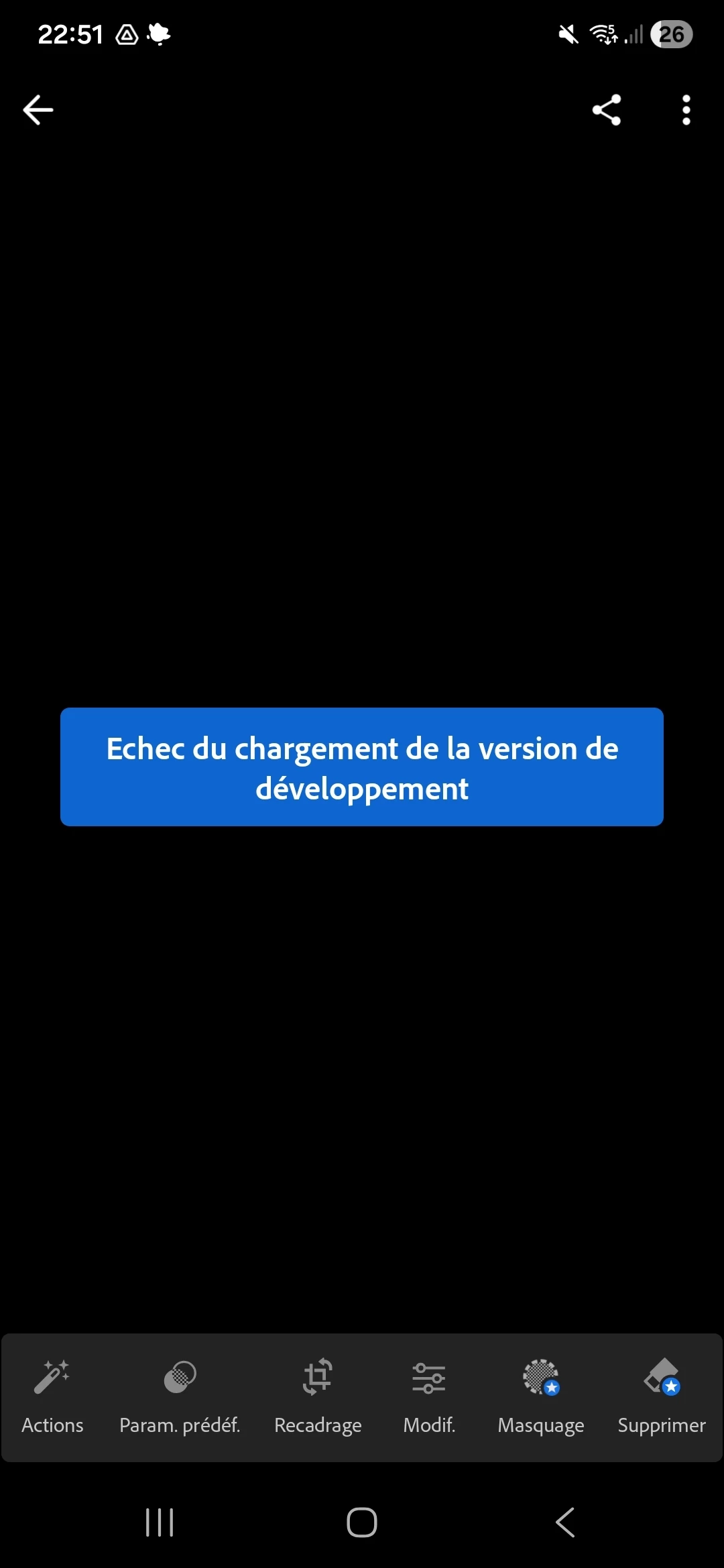 Une fois sur deux quand j'importe une photo j'ai le droit à un "échec du chargement de la version de développement"