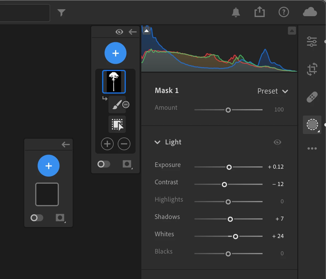 - a second floating masking panel appears