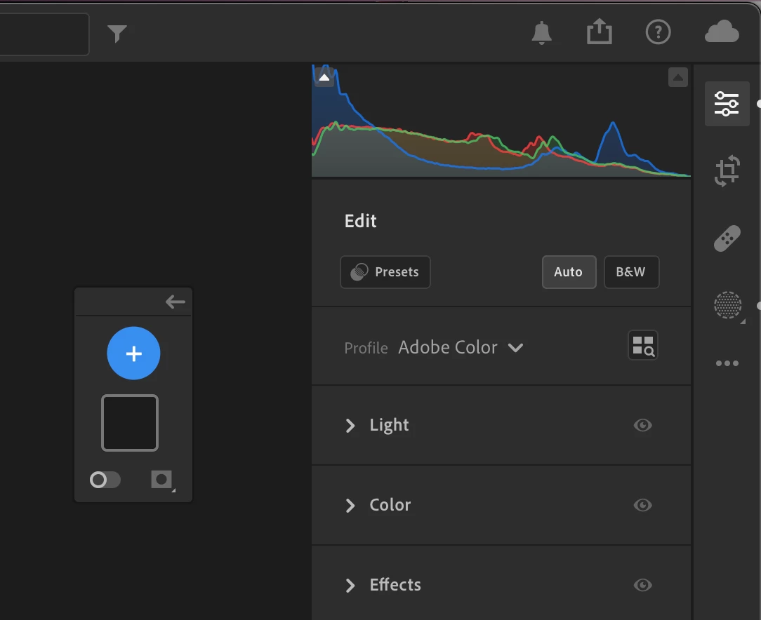 - start masking in a photo (add a mask, make some changes - it seems that a mask needs to be active and expanded in the floating panel for this bug to occur)