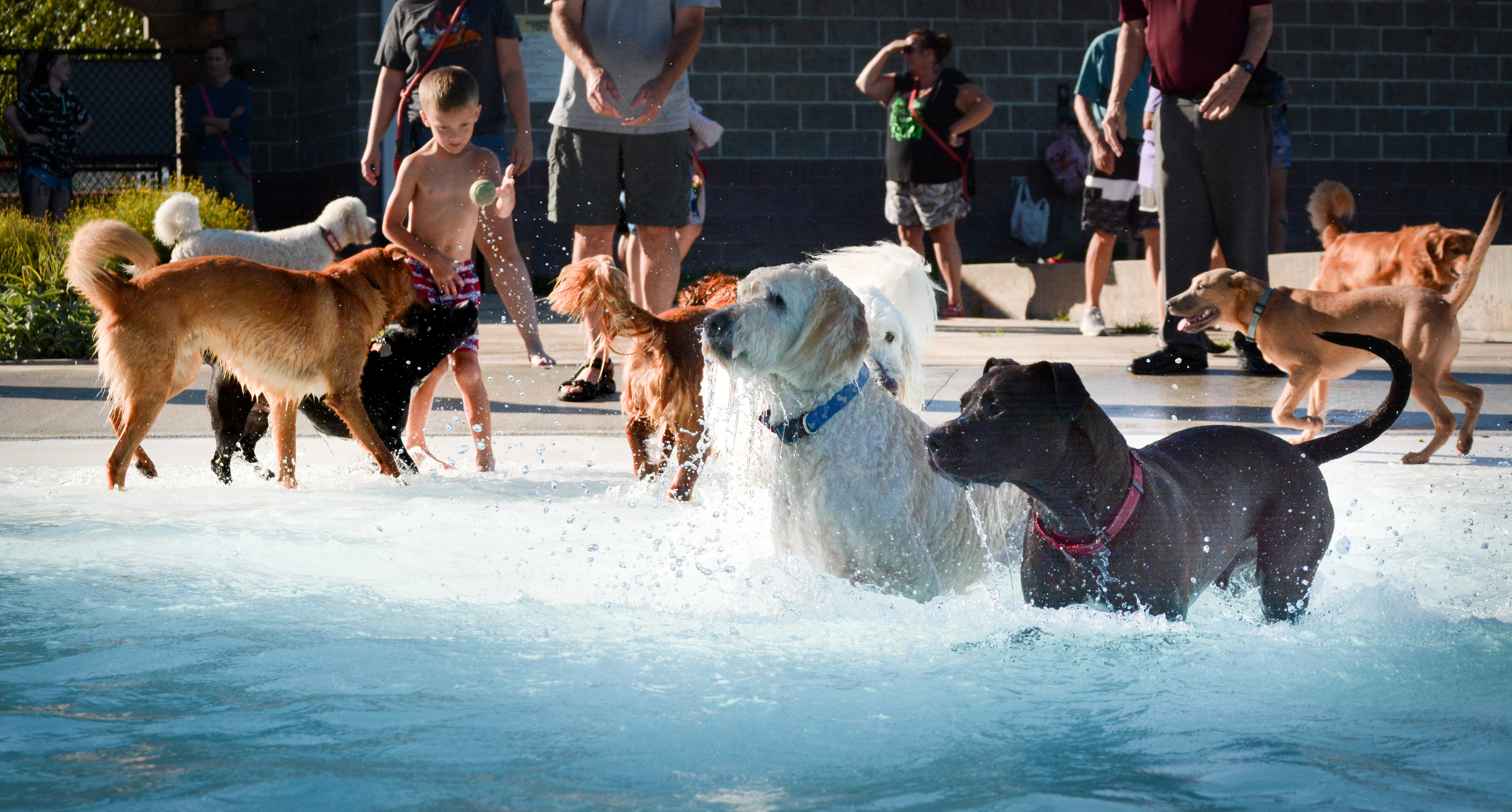 I took photos of a doggy swim in late afternoon light. The dogs' colors are from white to black and every color in between. I am shooting fast and the pool is half in bright light and half in shadows. When I bring up the exposure and the shadows of some black dogs so you can see their facial features, vertical black lines (noise) appears. Anyone have any good ways to lessen this? See dog on right.