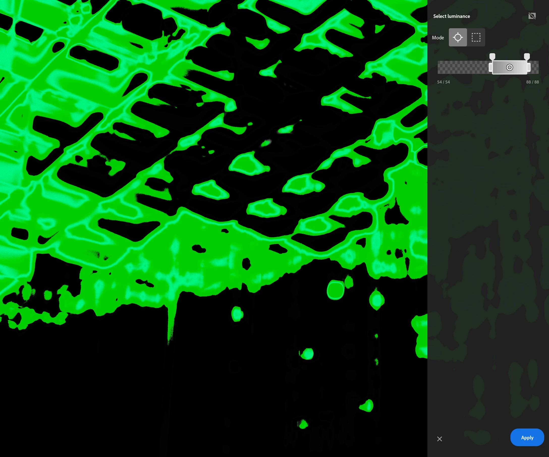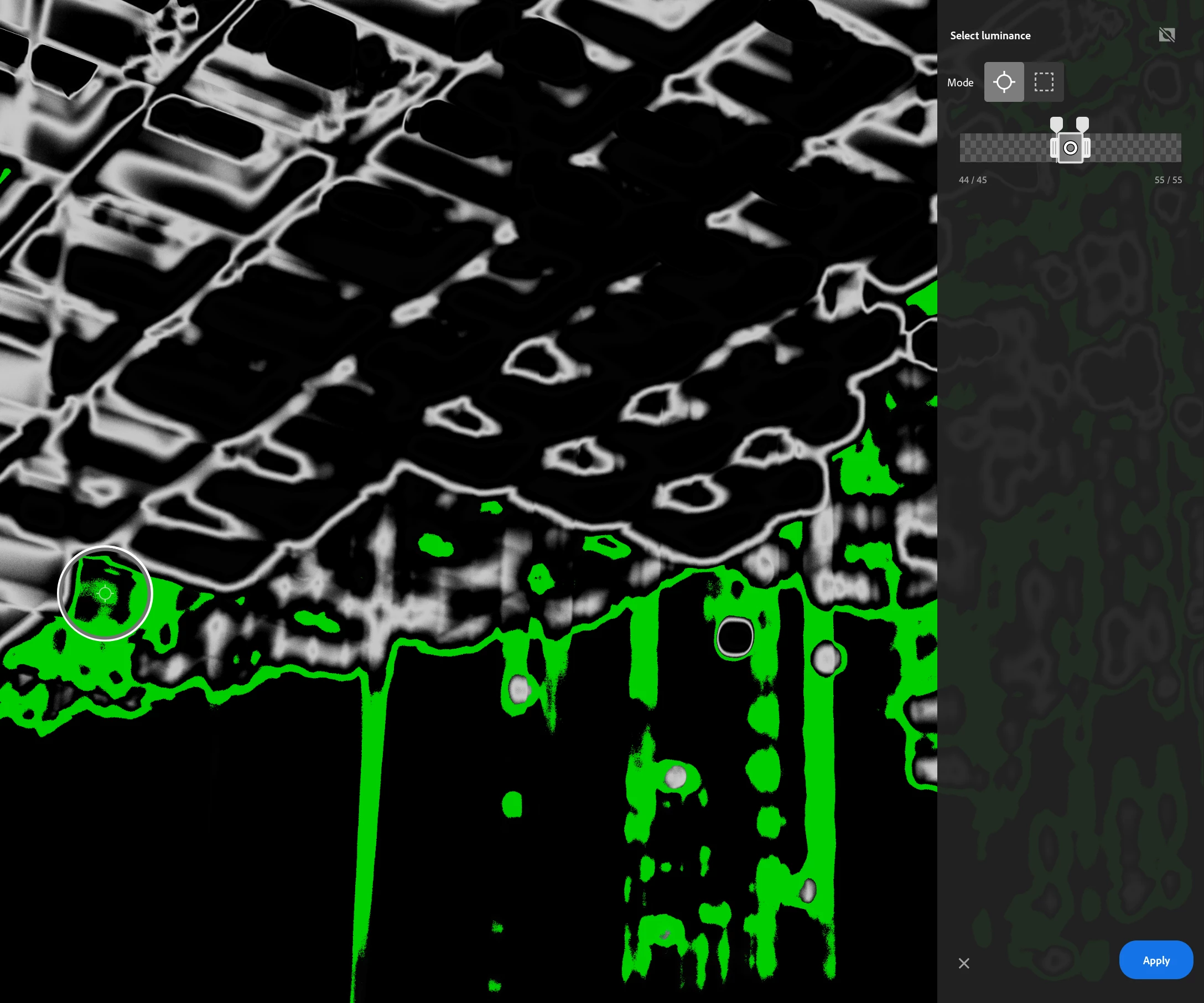 However, when I then go and make a luminance mask, targeting a range around 50% highlights a completely different area: