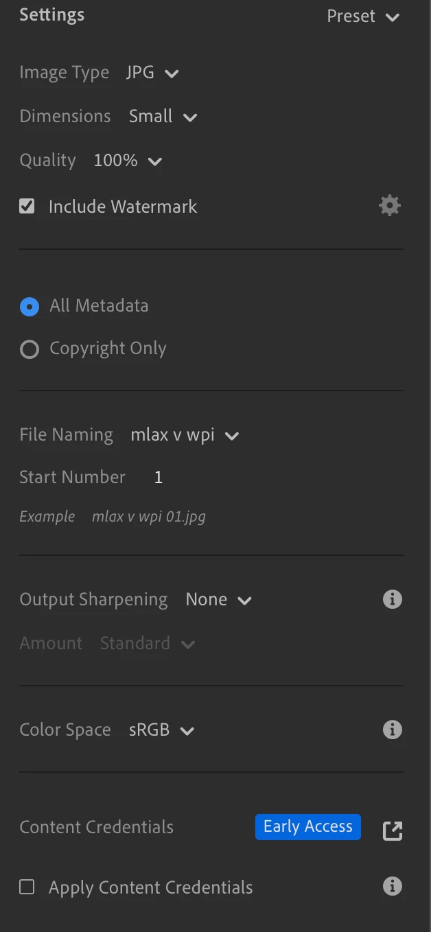 when exporting photos with custom settings, the sequence number and export name reset every time. when using a custom setting that isn't one of the presets, the number resets as well.