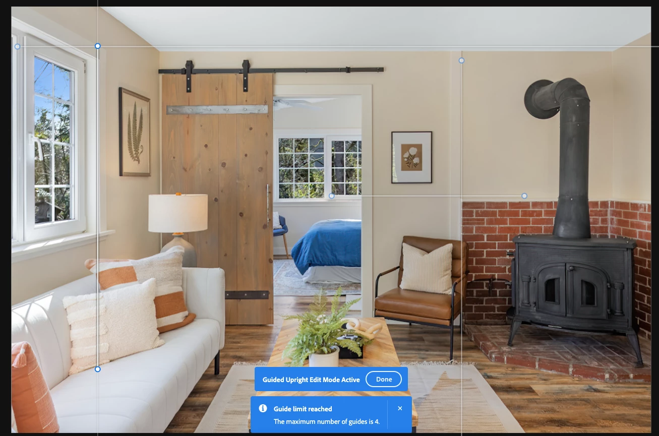If I get rid of the guide limit reached message, the other one that says guided upright edit mode active will take it's place. If I click on done it will close the edit window.