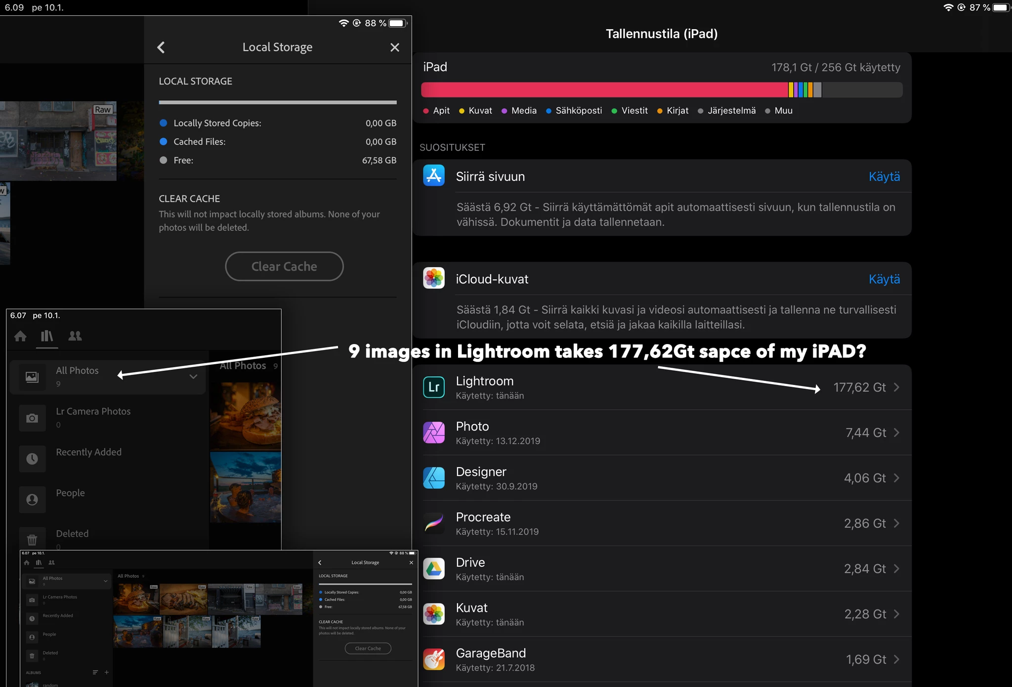 It's very annoying also that my iPad, which has 9 image in ipad/LR, takes 177,62 GB sapce of my iPad.