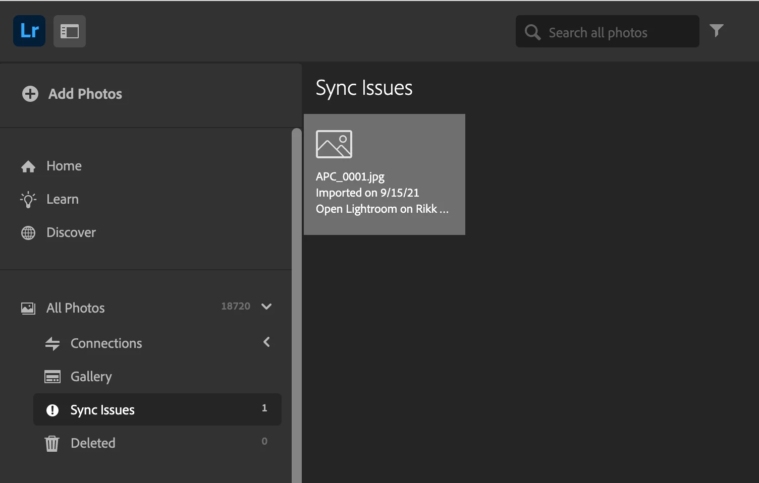 Why does LightRoom say "syncing" after I've emptied out all my photos?