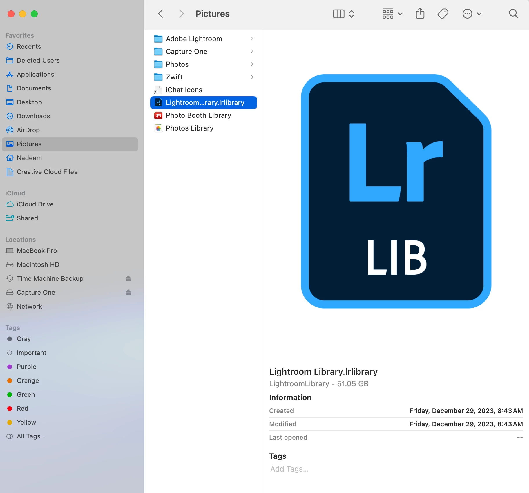 I have this Lightroom library on my system, which as I understand is for Lightroom (Lr) and not Classic (LrC). It is over 50gb! I've attached a screenshot of the library in Finder.