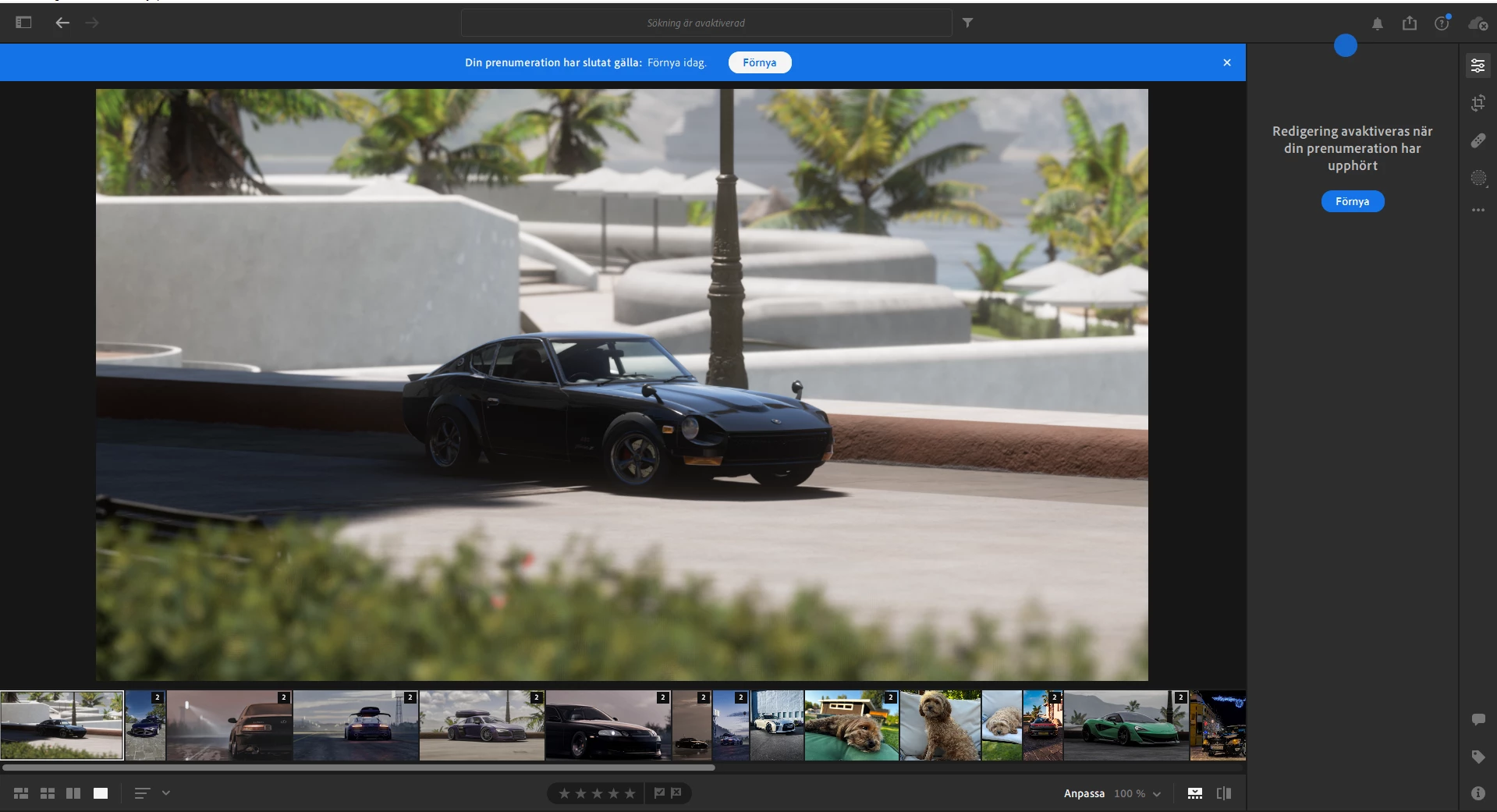(this image to show that in Lightroom its telling me to renew my subscription in order to edit pictures)