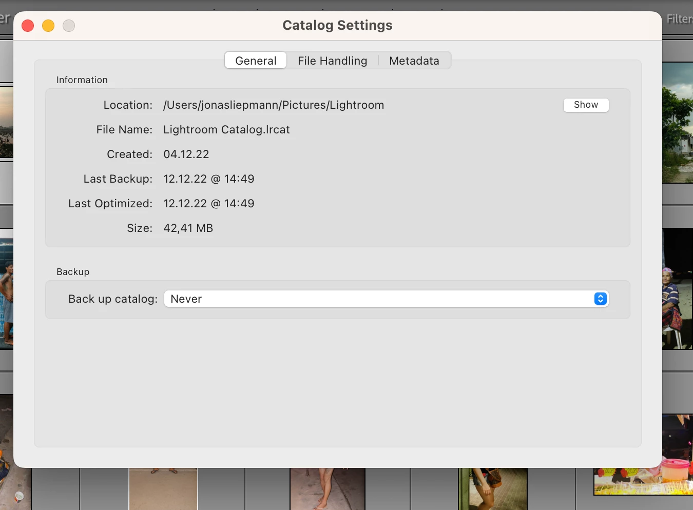 1) In order to prevent my internal drive to get too full 1) I (think I) set storing of originals to an external SSD in Lightroom: