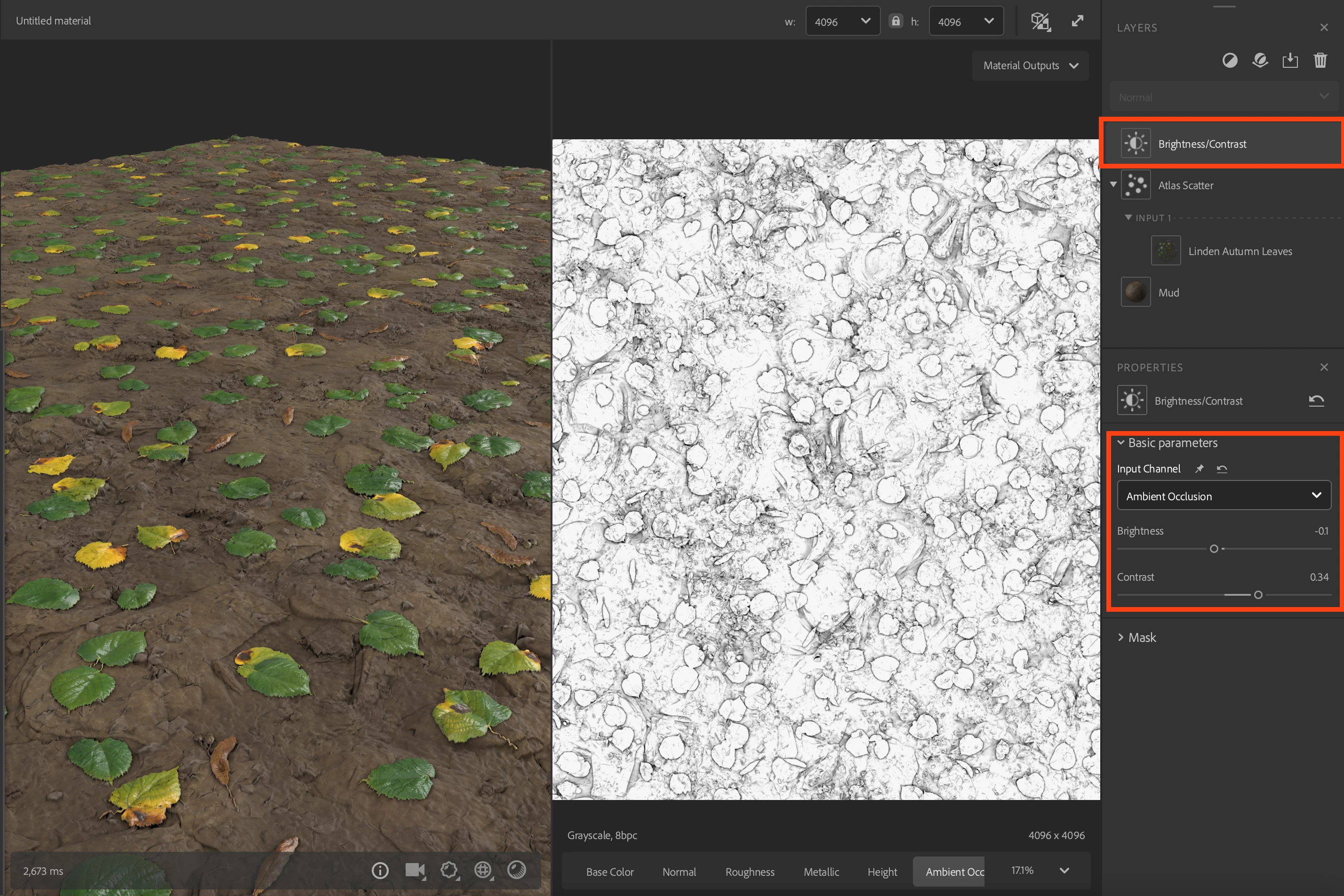 And my personal bonus to add depth is to tweak the Ambient occlusion to have a better "contact shadow" from the leaves using the "Brightness/Contrast" filter: