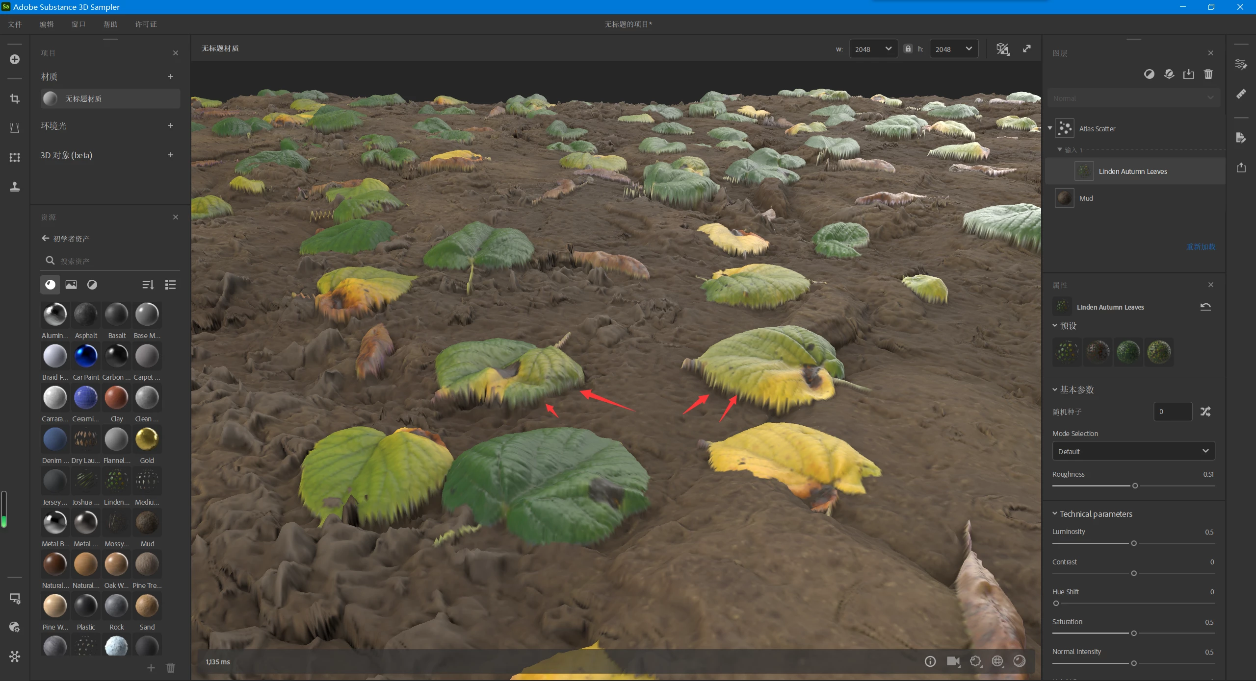 Tweak the Height values of the leaves materials too to make them coherent with the material underneath.