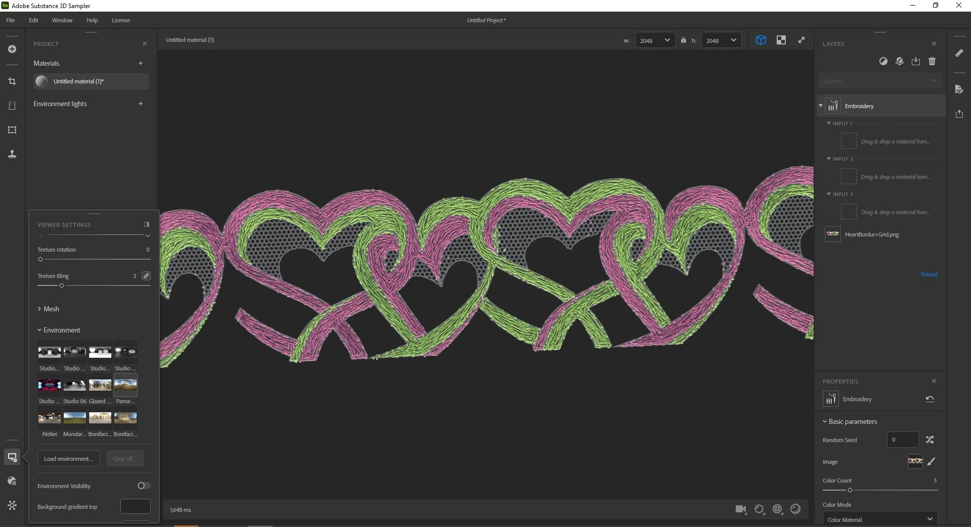 It looks like there is just too fine detail for those weaving/embrodery filters to be effective. You may need to split the material and use Sampler for the main threads and go to Designer to create a separate material for the finer lace threads. Designer can work in 8k (provided your PC will support it)