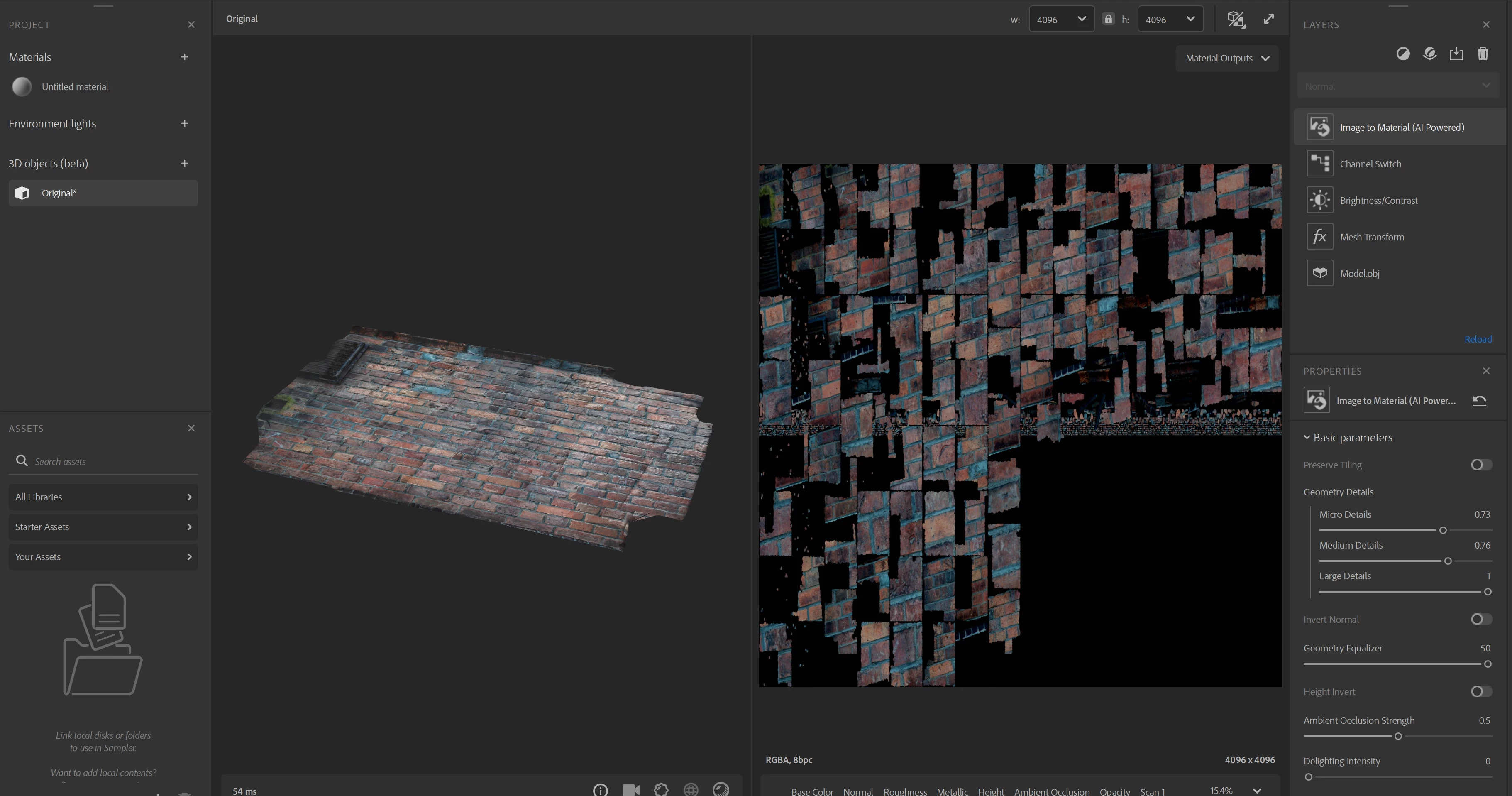If I go 3d object, import data set, there I will give some photos of object. My 3d geometry is made and I have nicely previeved texture of bricked wall. On other side UV of my scann is messed but I am aware that this is the part of scan process.