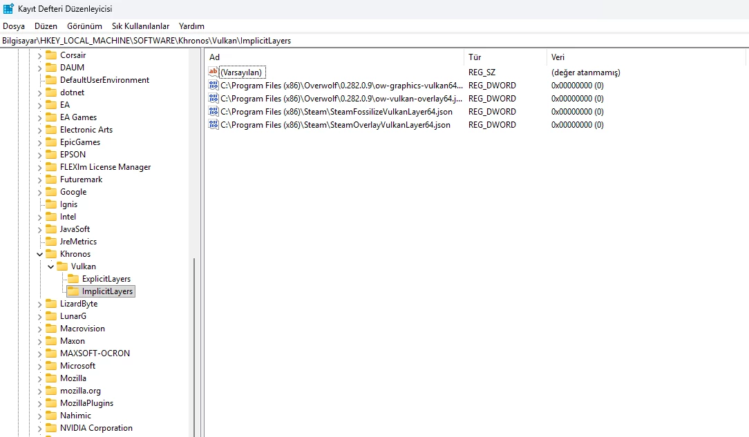 Bilgisayar\HKEY_LOCAL_MACHINE\SOFTWARE\Khronos\Vulkan\ImplicitLayers