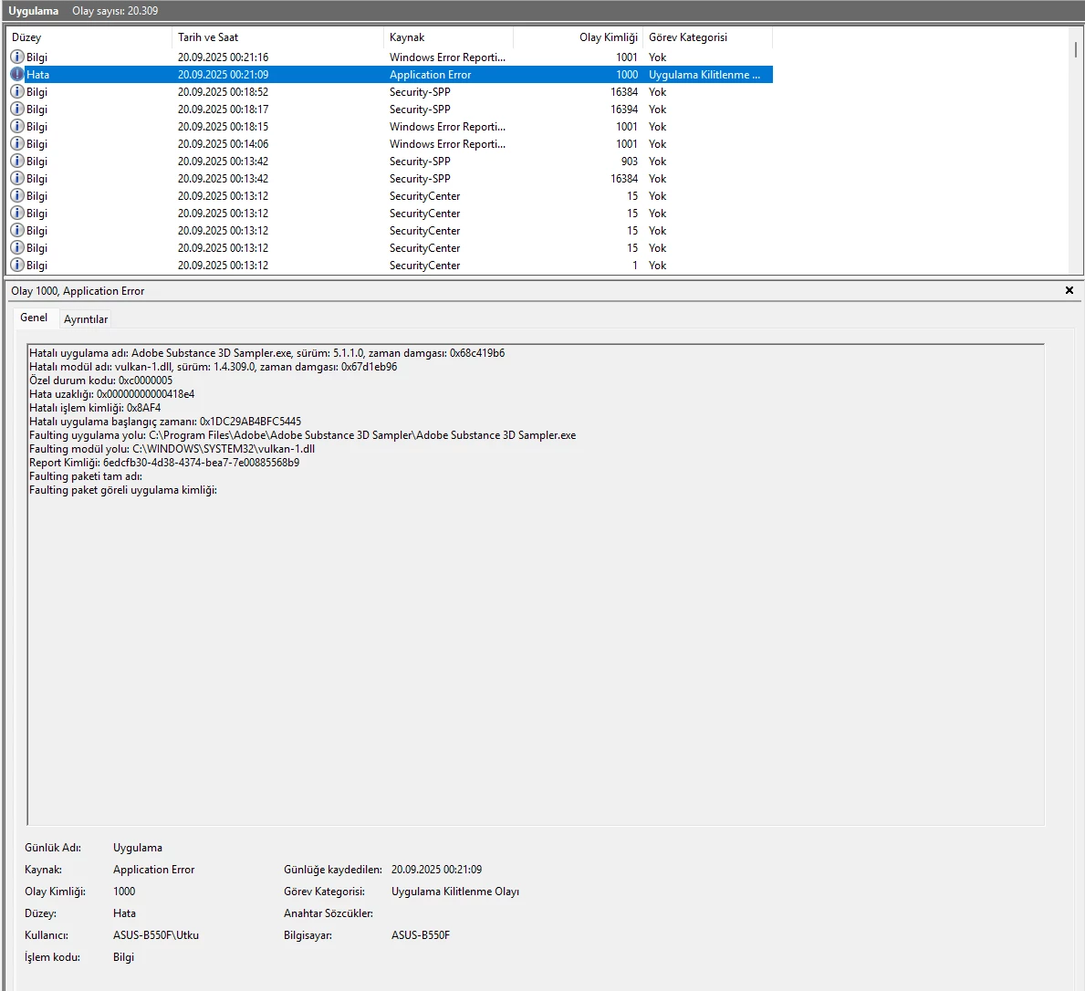 • I have attached the Event Viewer logs (.evtx) that consistently show the Vulkan runtime failure.