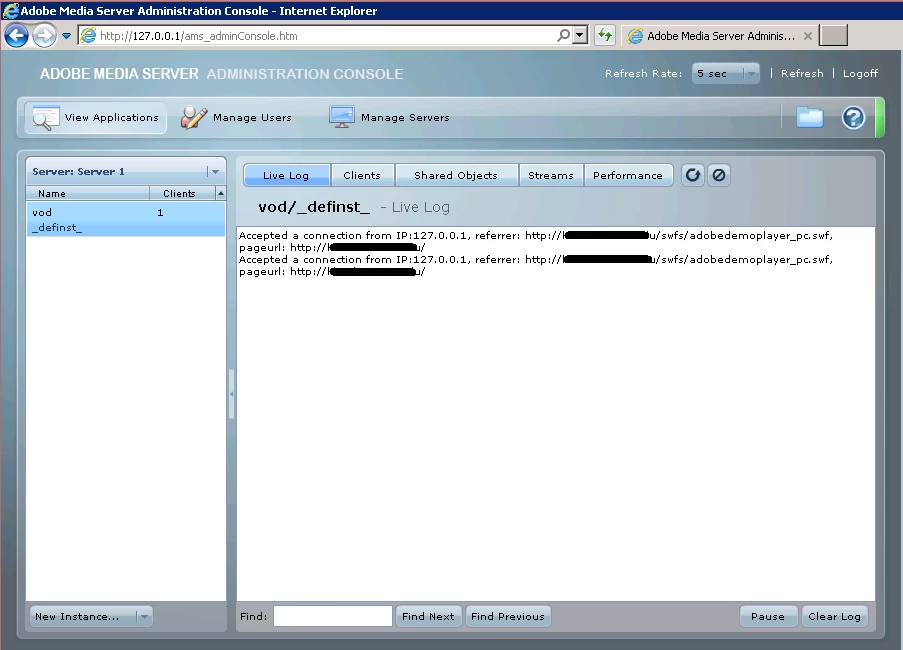 Is there any way to only allow a certain IP range to views VODs in a specific application on the server? In main.asc I tried getting the client.ip but it only returns 127.0.0.1 as the address, which I assume is because the video player is hosted on the server itself. Is there any way to get the IP address of the actual user? We want to be able to limit users to viewing certain videos while they are within a certain subnet. Thanks!