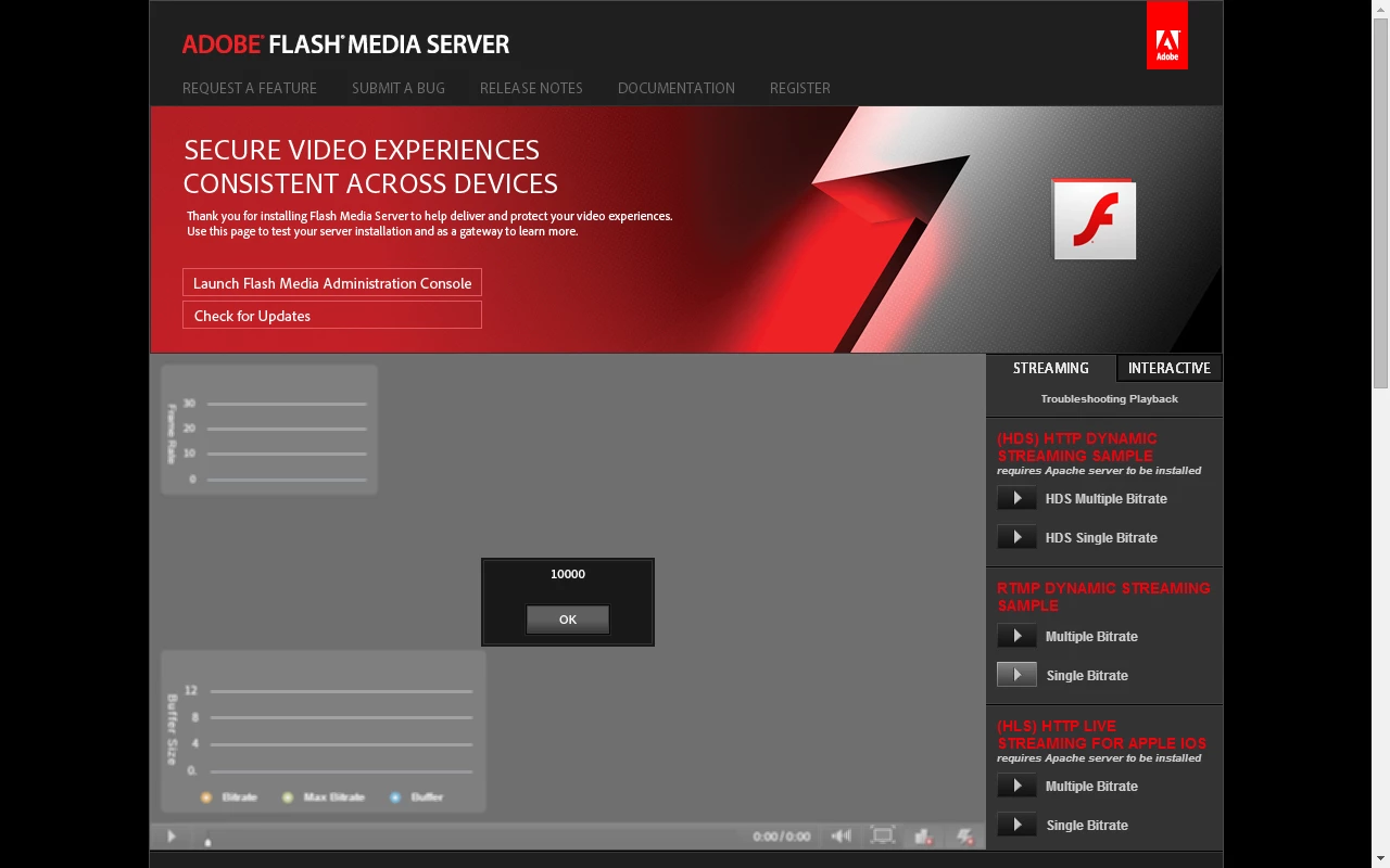 Unable to play video using fresh installation flash media server , showing 10000 , and 2032 error , please see the screen shot.