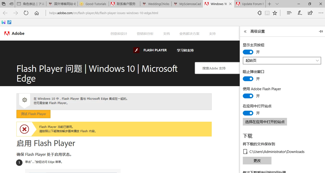 There must be something wrong with the Flash Player in my Microsoft Edge. It is said that Adobe Flash Player is contained in Windows 10, so I don't need to download a new one. BUT this player seems to NEVER have worked! I checked the tutorial, and it just didn't help. I don't know what's wrong with it...