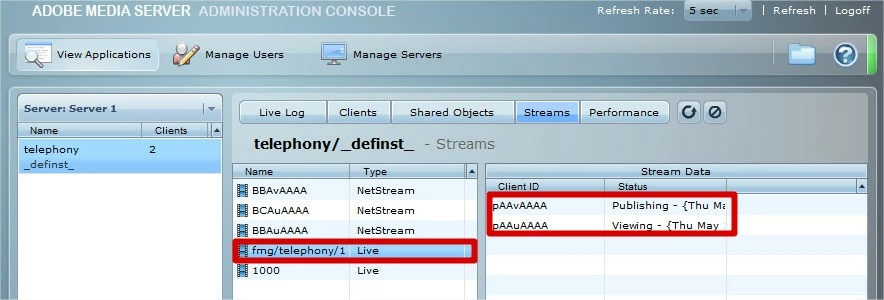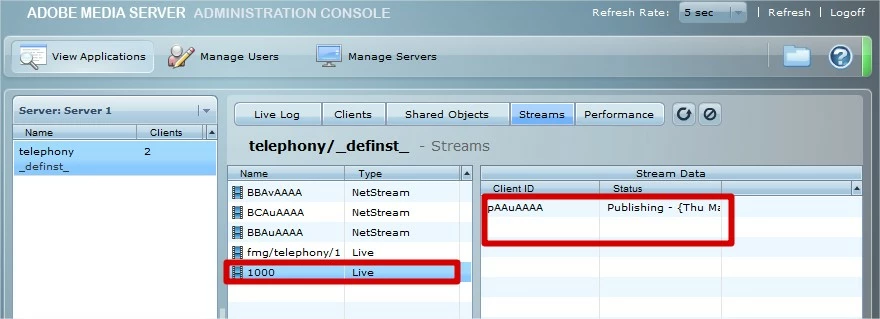 What i thought could be the problem is that when receiving the onLeg event from FMS, the stream name is not equal to phoneID but something like fmg/telephony/1, is that normal? or should it also be the phoneID?