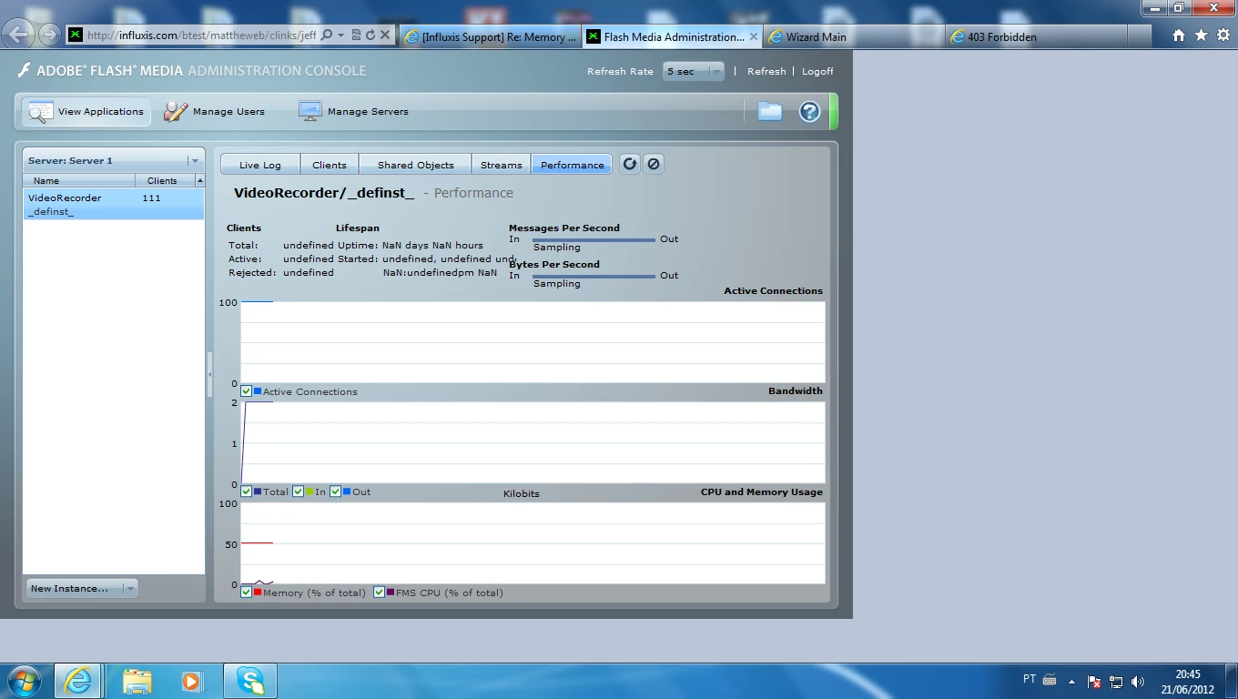 Hi, I've been using the Adobe Flash Media Administration Console for over a year, never had problems with it, but for some unknown error all I see in "View Application" is undefined, see the screenshot.