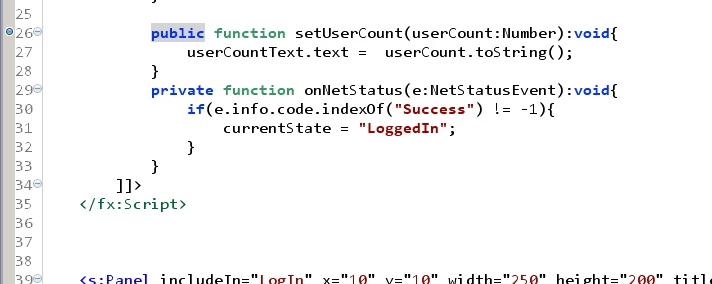 <s:Label includeIn="LoggedIn" x="150" y="136" color="#0E55F6" fontSize="20" text="You are now logged in!"/>