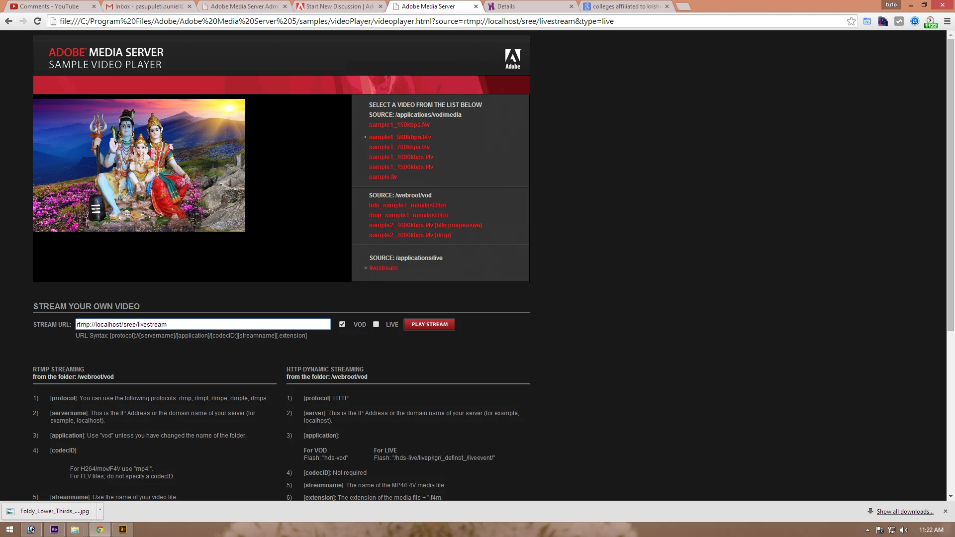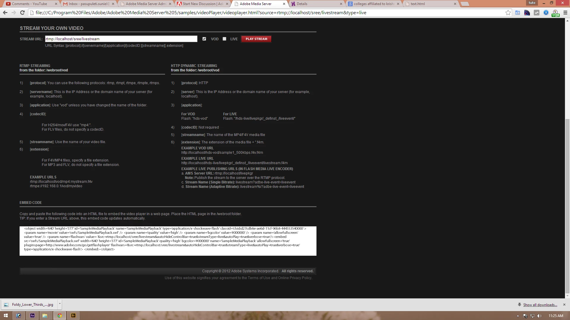 how to add live stream to my website from adobe media server 5.0 ( Code Not Working/not Displaying)..?