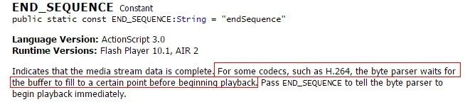 The client works, howerver, the NetStream does not start palying the video until it caches about 20 tags into the buffer (about 2 seconds, because the fps is 10). It does not satisfy my requirement that I need to play the stream immediately while the client receives a tag. I set the bufferTime = 0 or other small number, there's no effect, waiting about 20 tags as usual. While I set the bufferTime bigger such as 5, it works that NetStream waiting more tags.