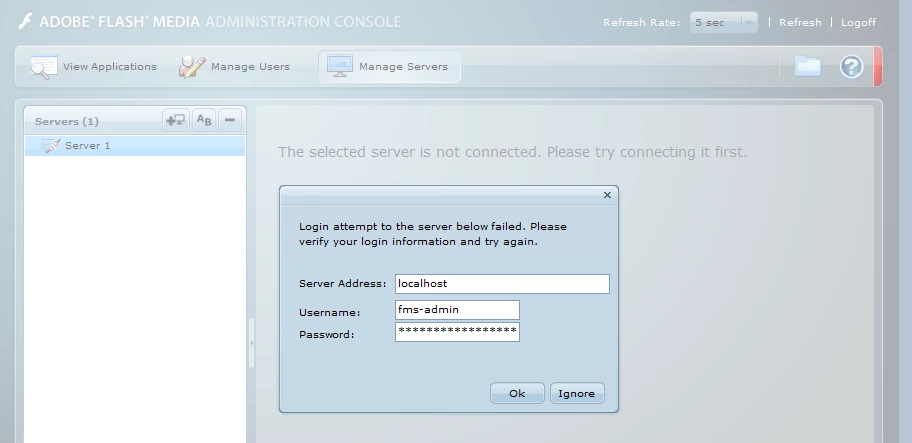 The user and pasword are right, the one used when I installed FMS but it won't let me login! What I am doing wrong and where should I look for a fix?