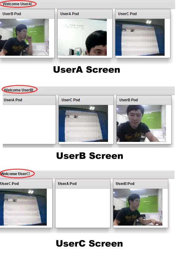 When UserC is logged in, all users are disconnected(see the FMS admin console). But some movie is woking(not all the movie).