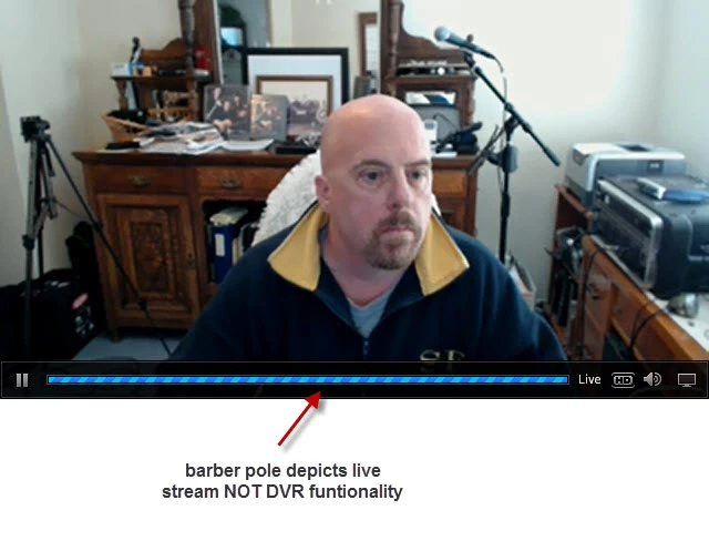 1. Why is my OSMF Player showing only "Live" and the barberpole in the timeline doesn't allow me to go back on the stream?