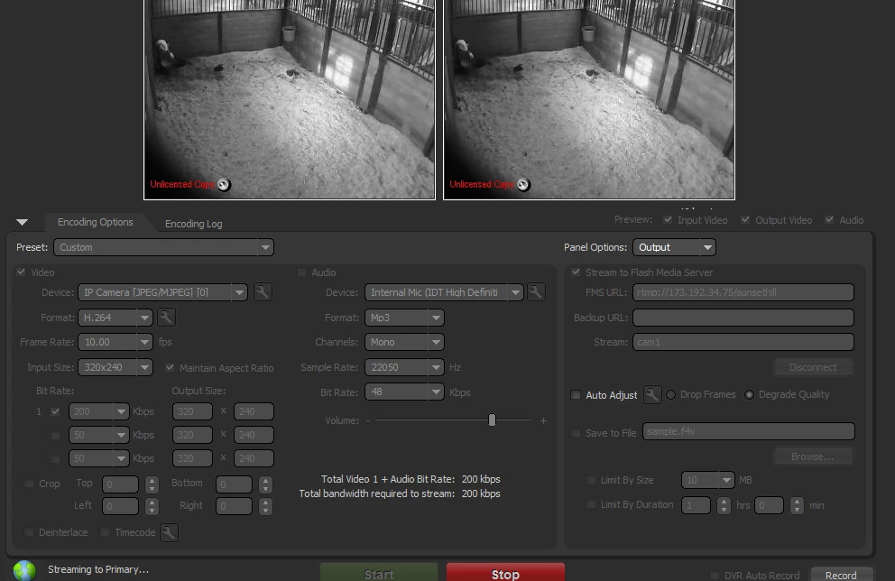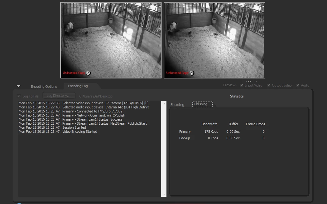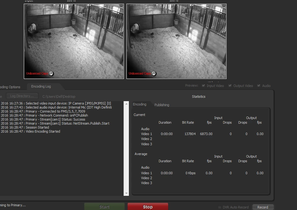 my camera feed is not streaming. everything, to my knowledge looks right other than in the publishing stats.. it shows the bandwidth creeping below requirement even if I cut the bitrate and frame rates down.