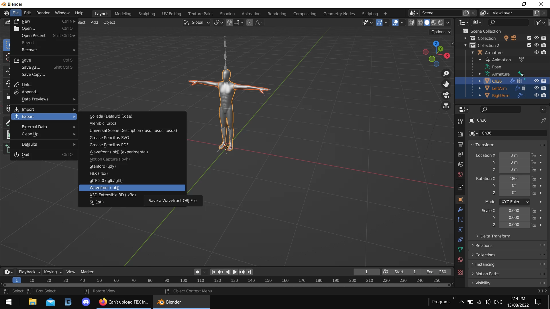 2. Edit it in Blender 3.2 (for example I need arms to be a separated mesh parts)