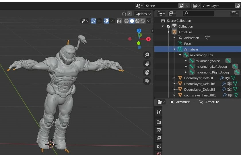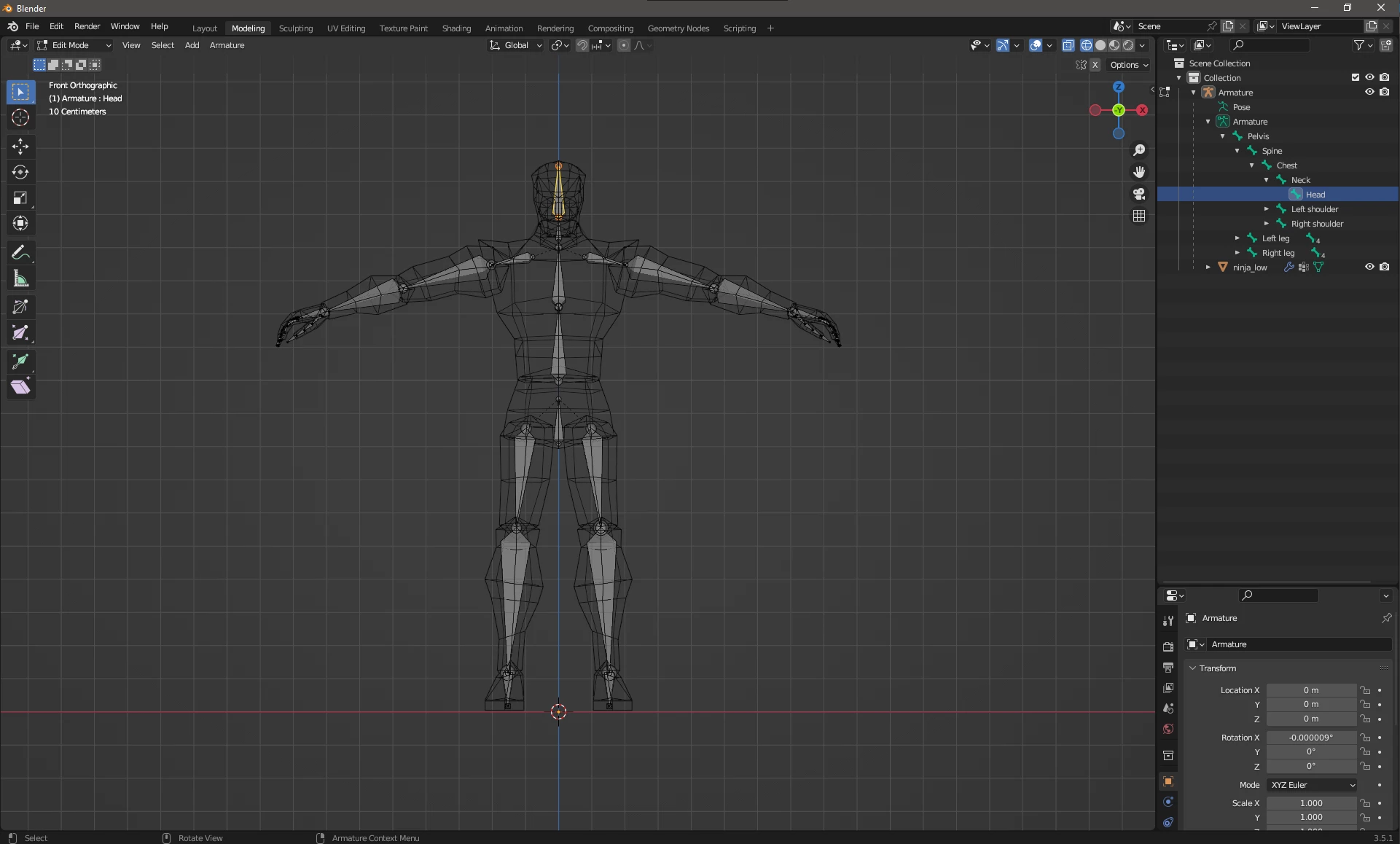 I got the original rigged model from Sketchfab (The original setup doesn't animate the head either when uploaded). I removed the bones for the sword and the top of the head.