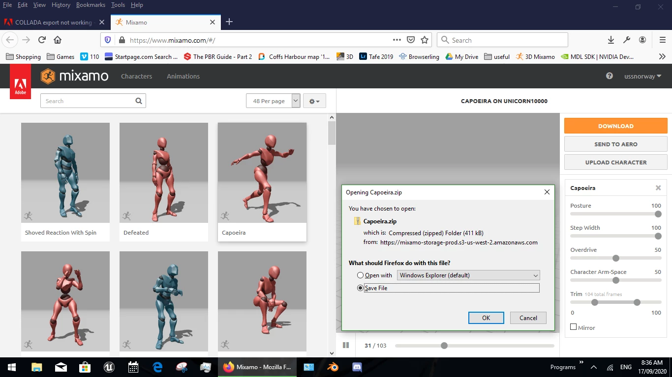 Looking to download as COLLADA as I've noticed FBX has leg rigging issues in the file downloaded.