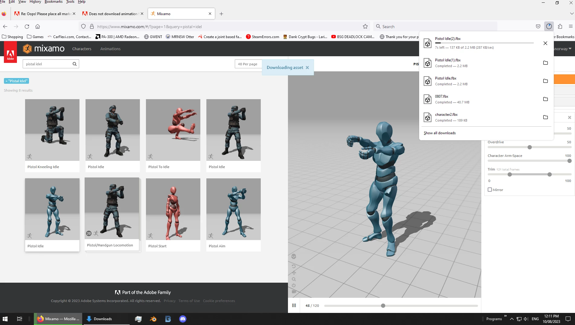 I'm trying to download a mixamo animation for a Y bot character, but the site just hangs and takes forever to prepare the download. This happens only with the Y bot character, but that's the one I need.