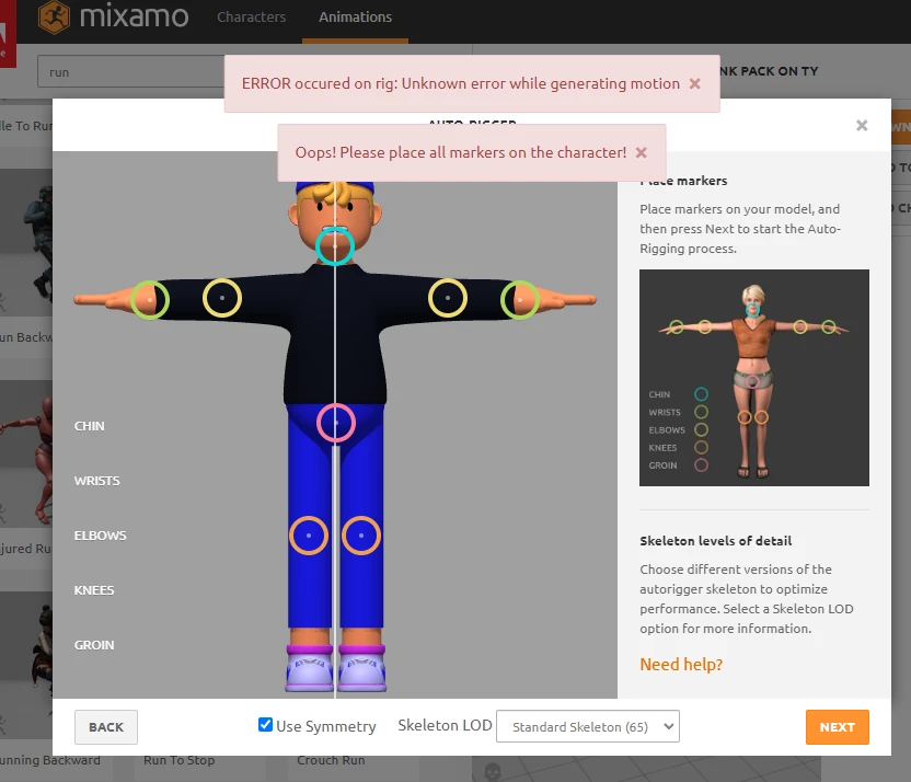 ERROR on Rig - Unknown Error while generating motion