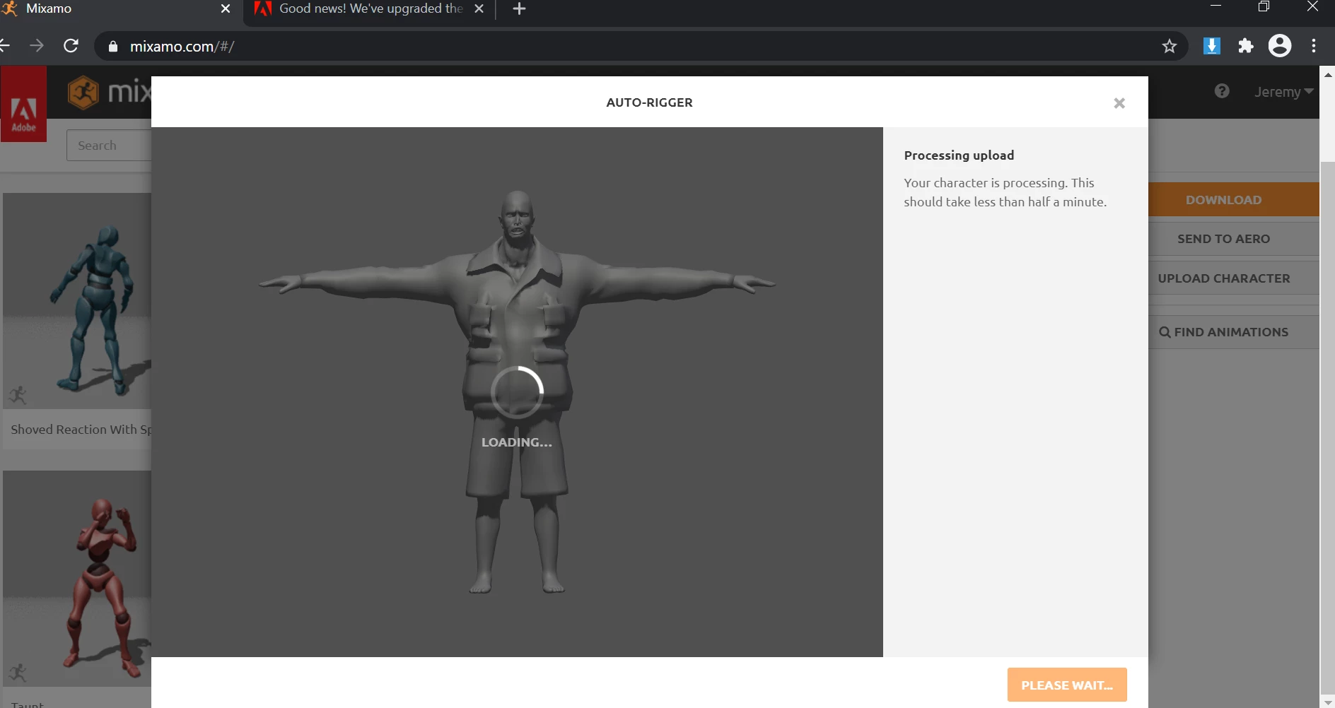 This update has completely broken Mixamo for me. I upload my .obj file and then it just sticks on the "Processing upload" screen forever and never finishes processing.