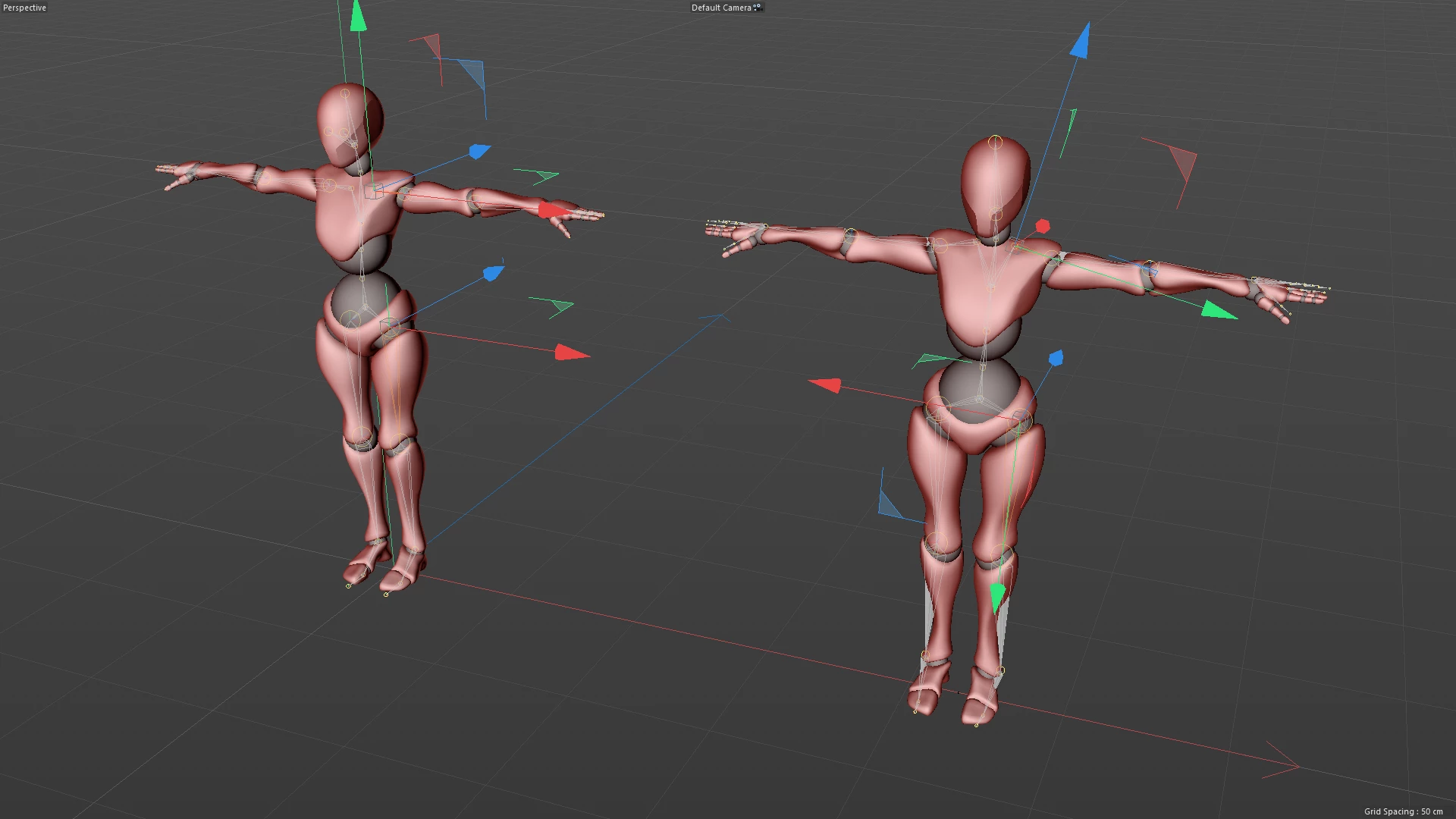 I don't mean to put you in the spot, but I did perform a test that shows that Original Mixamo Rigs and Mixamo's AutoRig deliver different joint orientations. As you can see in this composited photo I've attached, the rig on the left is the one I had downloaded from Mixamo as is. The one on the right is the result of the experiment: I uploaded the geometry back to Mixamo's page and it went thru its AutoRig process. This matters because the original Mixamo rigs throw off Cinema 4D's Mixamo Control Rig.