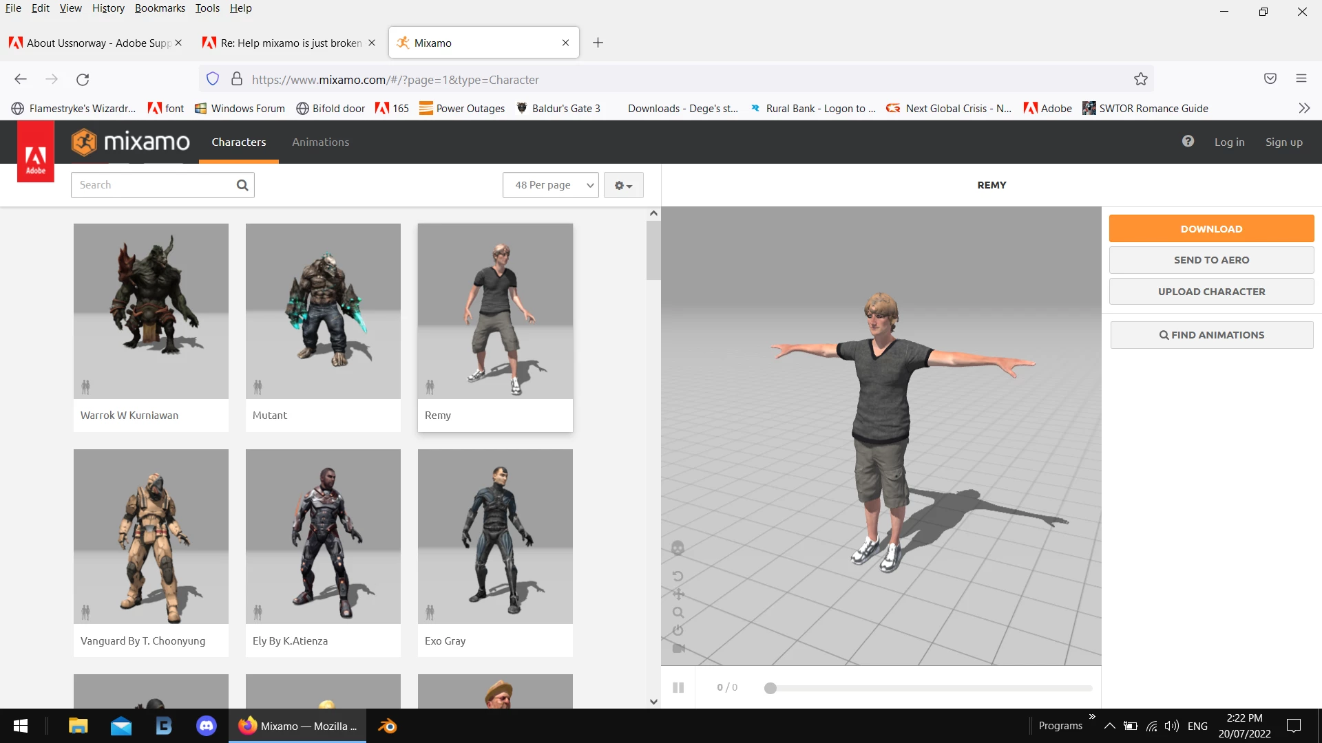 Every character they have or I import in looks like this. I don't have any idea how to fix this and have been looking all over and trying to find a way to contact adobe for help on this. Anyone able to help I'm trying to learn unity and the courses I'm taking are asking me to use mixamo for some of the animations so I'm stuck in my studies until I can figure this out.