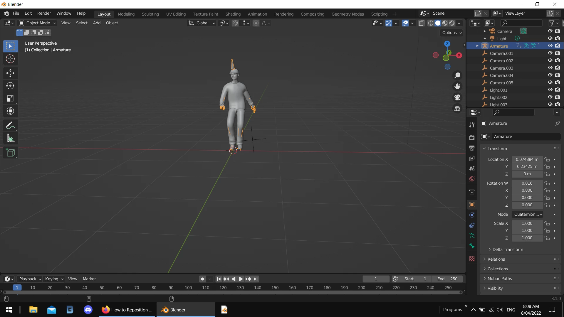 I exported the character(.glb) into blender and tried to set neutral positions X,Y,Z axis but still it is not fitting into my screen and the 3d mixamo character is completely distorted
