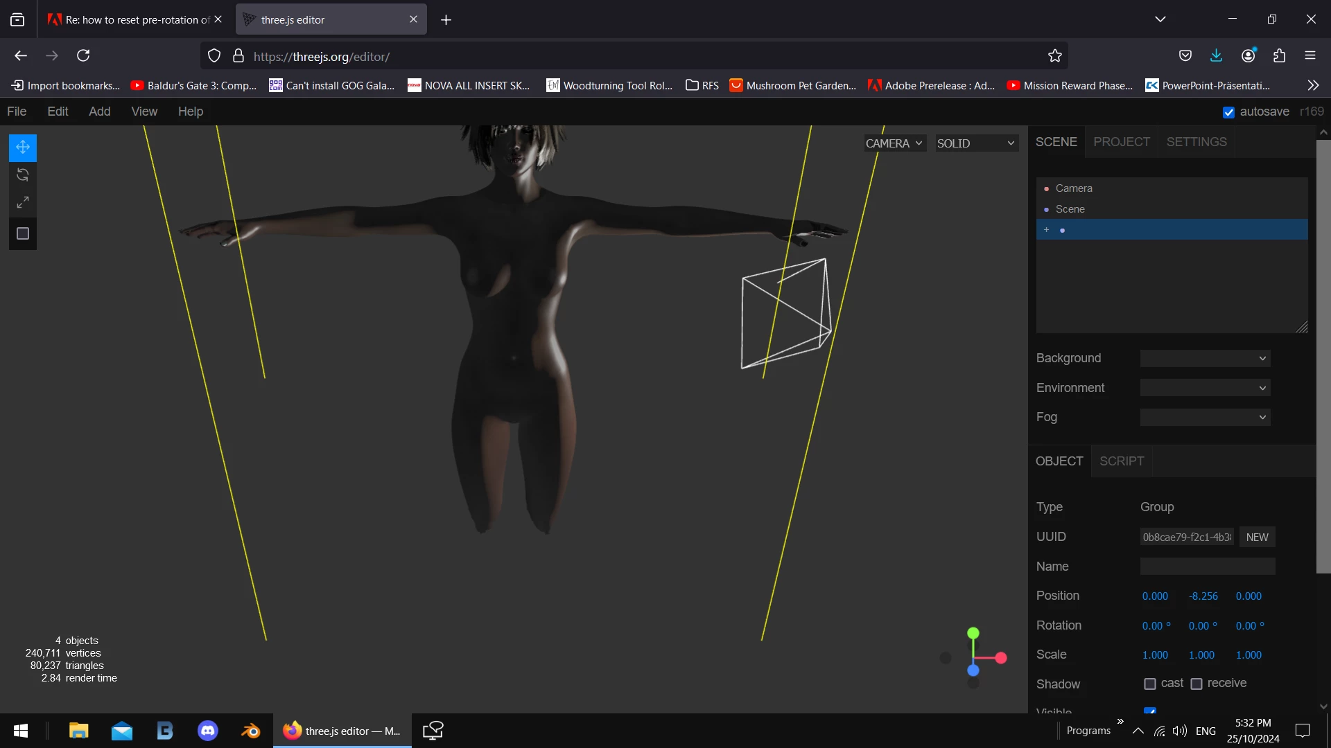 1 thats not true... threejs can import Fbx without any bones, rotated or otherwise