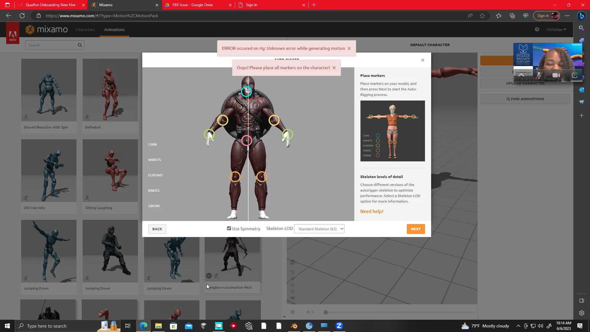 Everytime I place the markers for my custom character, i get an error message saying that all markers need to be placed on the character. All markers are placed on the character. I have no clue what the issue might be. Here is the link for the fbx and blender file if you need it. https://drive.google.com/drive/folders/1U8JnDq8SiD5zHxpveNdCK2BCBfHylKZJ?usp=sharing