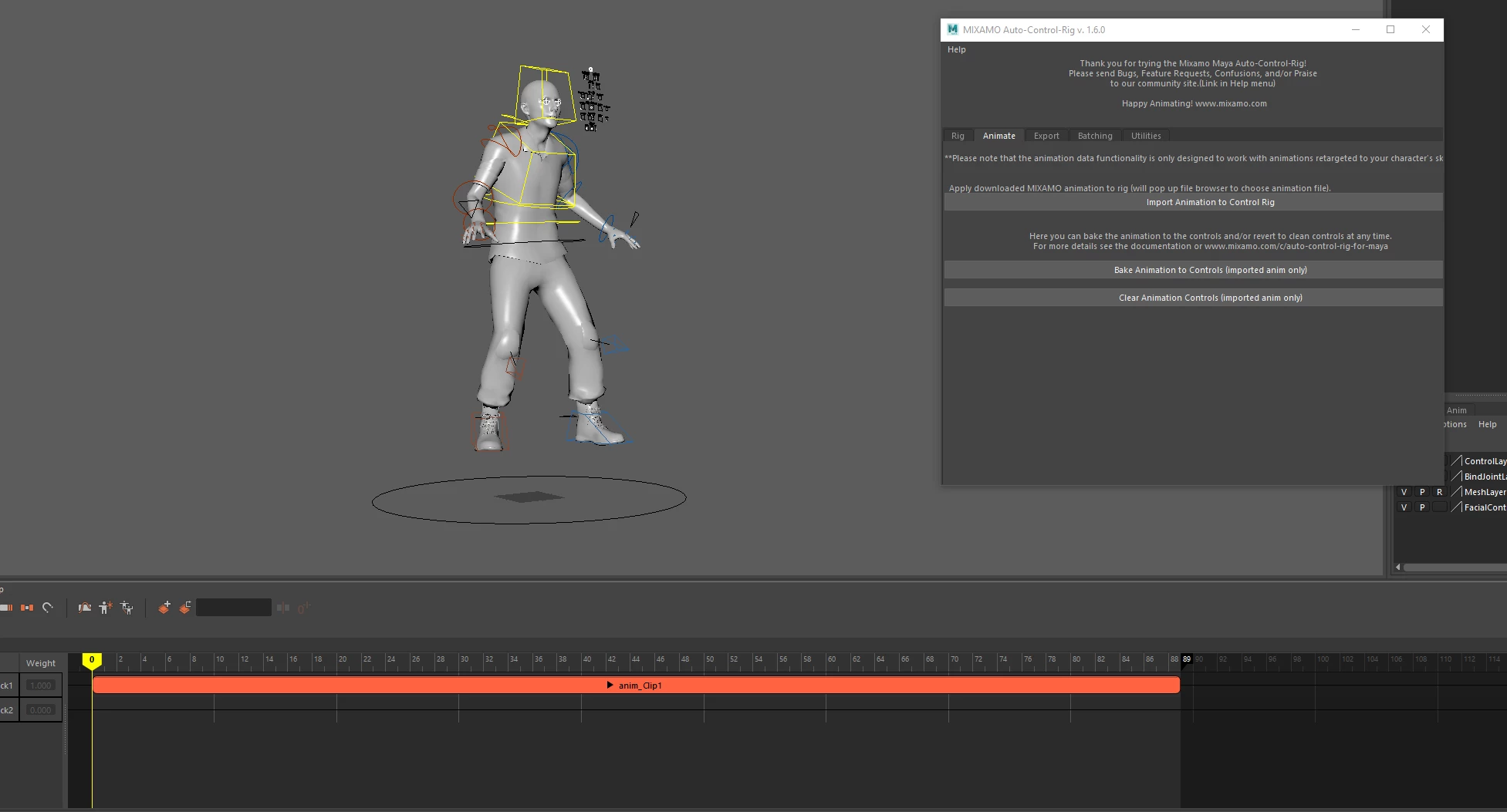 Mixamo Control Rig-Multiple FBX animations on one rigged character