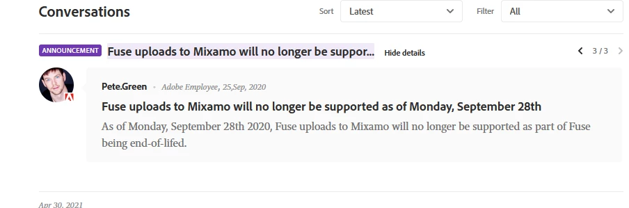 What could be the problem and how to solve it? Why did you then prohibit exporting models directly from Fuse CC? I understand that you stopped supporting Fuse CC in 2020. But then why didn't you set up the correct uploading of models through the site www.mixamo.com? Is Adobe going to support such a powerful and wonderful tool as Fuse CC again? Where can I download or buy armor and other clothing for Fuse CC models?
