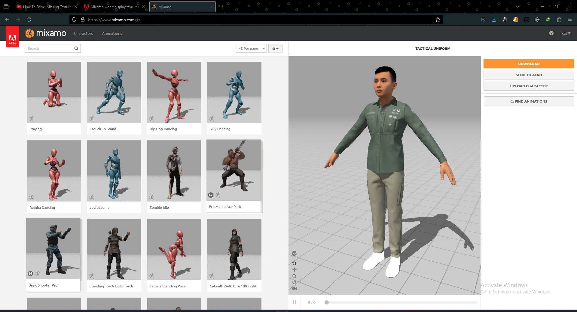But uploading the zip into mixamo.com still gives me a textureless model. What am I doing wrong?