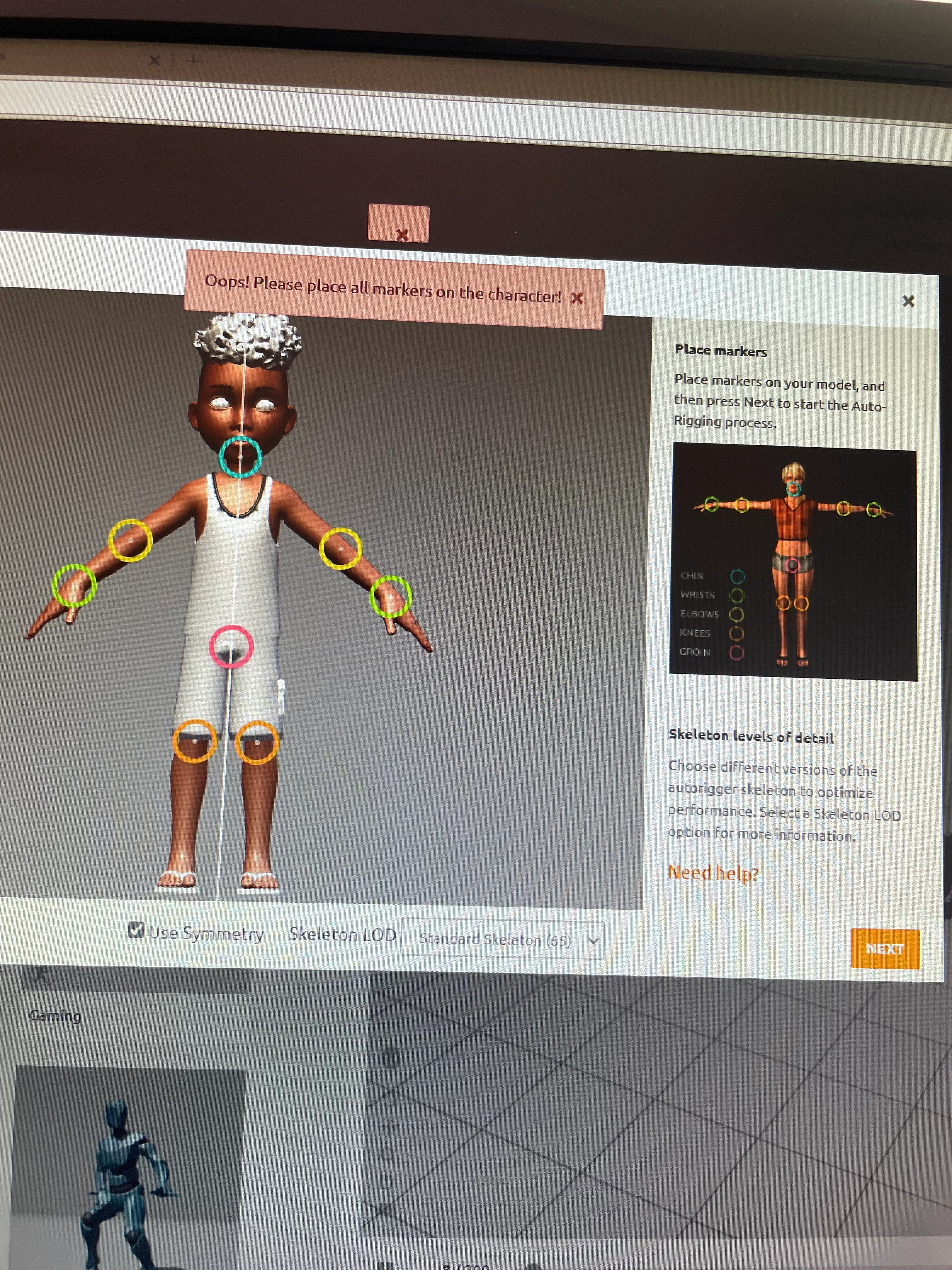 Oops! Please place all markers on the character!