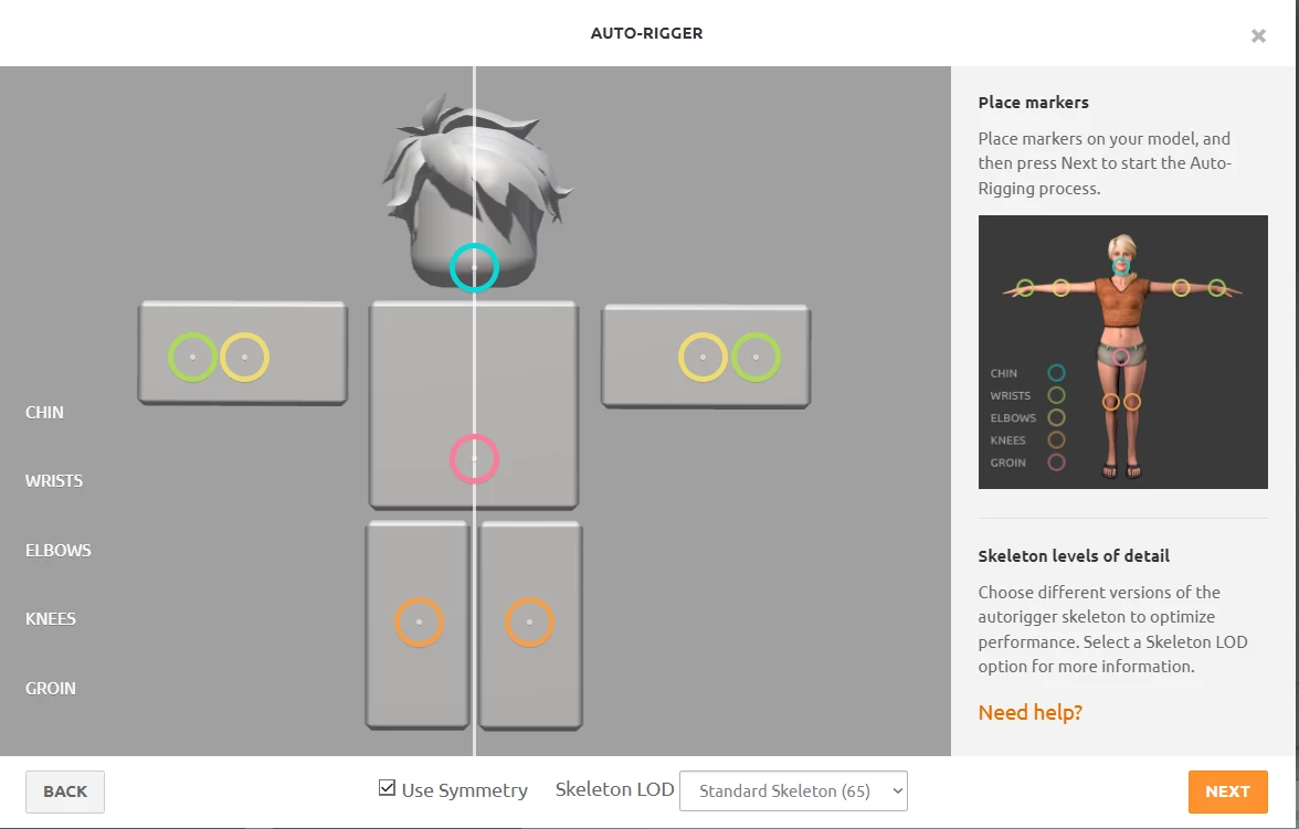 "Oops! Please place all the markers on the character" - issue when auto-rigging a blocky character